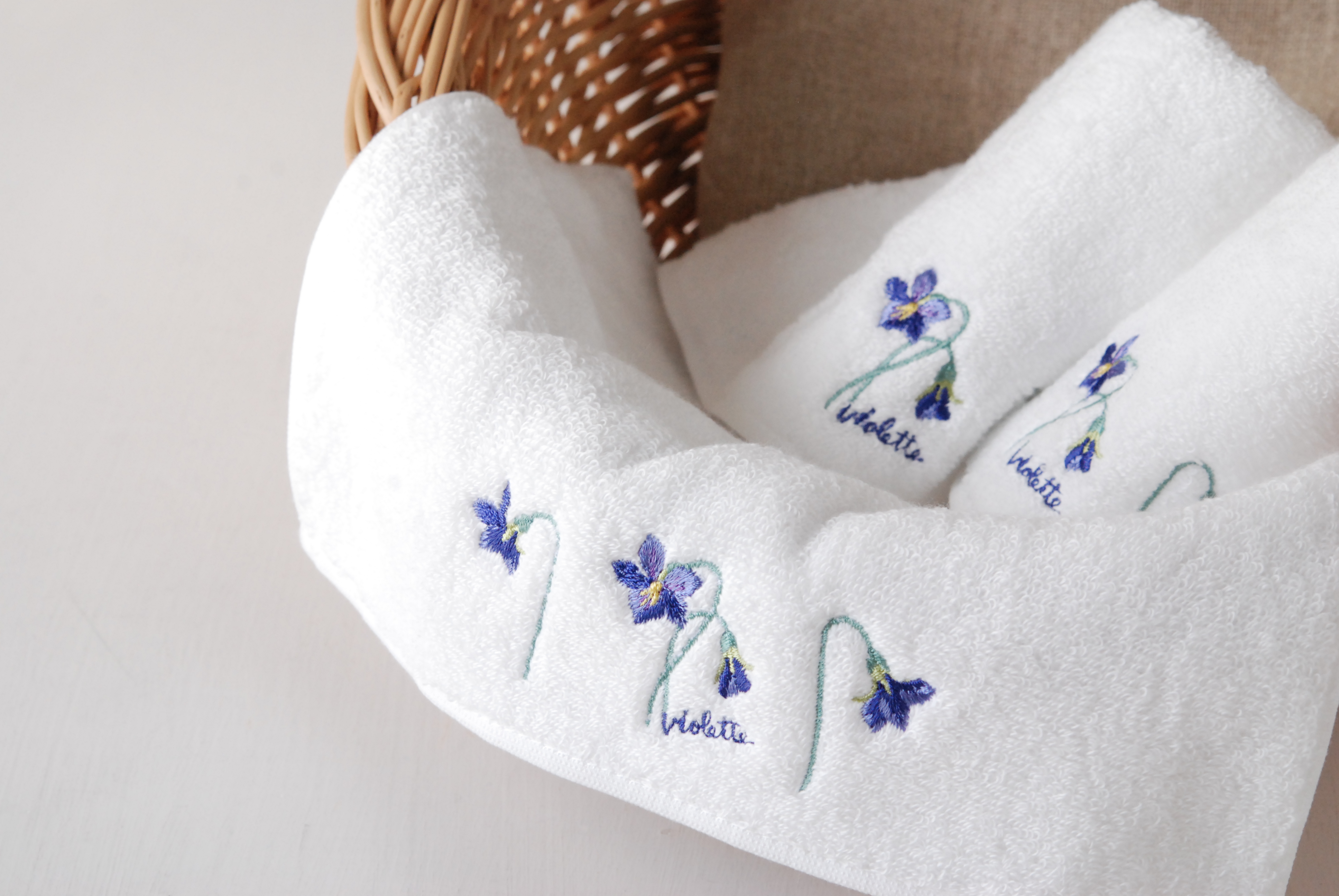 また、スミレ刺繍のミニハンカチのブラン(白)を先行販売いたします。