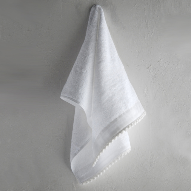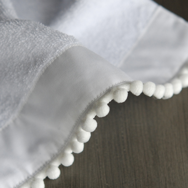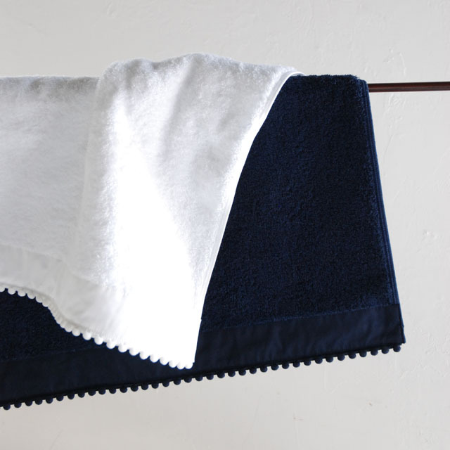 ネイビーと白の配色のタオルにあしらったボンテンブレードが可愛くなりすぎず、