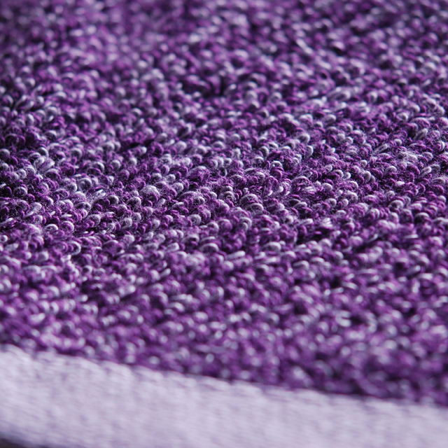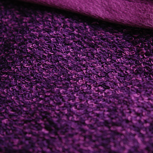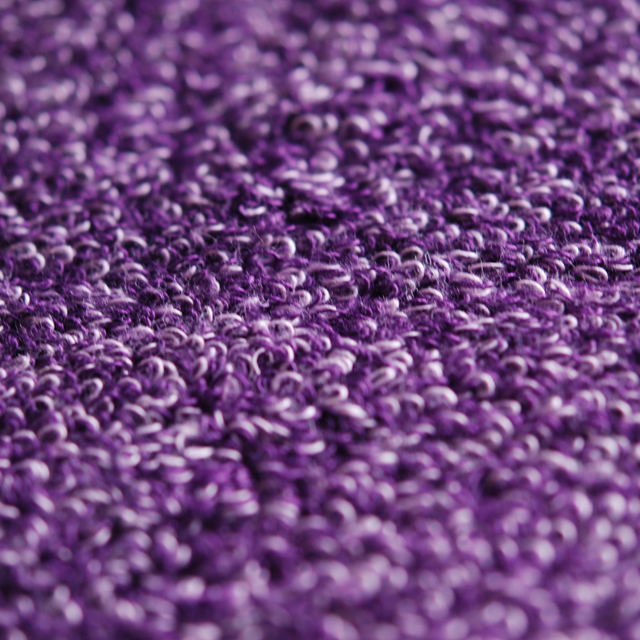 糸を2回染めることにより毛違いジャカード織の表裏が違う色合いにし、1本1本の糸の色が光を放ったように
