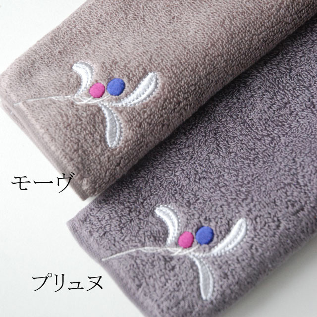 こちらのミニタオルハンカチは幸運のモチーフであるオリーブが刺繍されています。