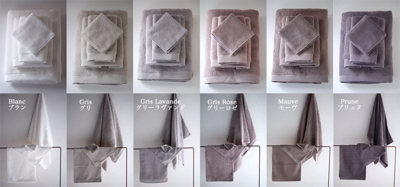 パリの空、パリの景色をイメージした12色のタオルにフランジュールのロゴを刺繍しました。
