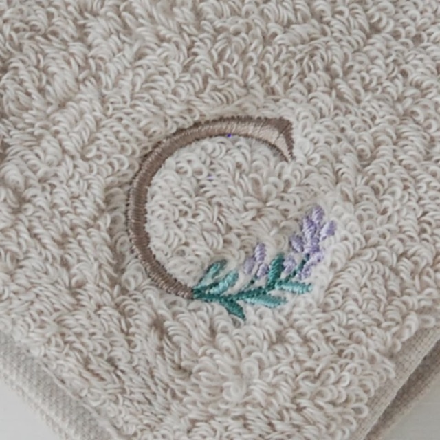 フランジュールオリジナルタオル「Annee」に使用されている文字を1文字ずつ刺繍しました。