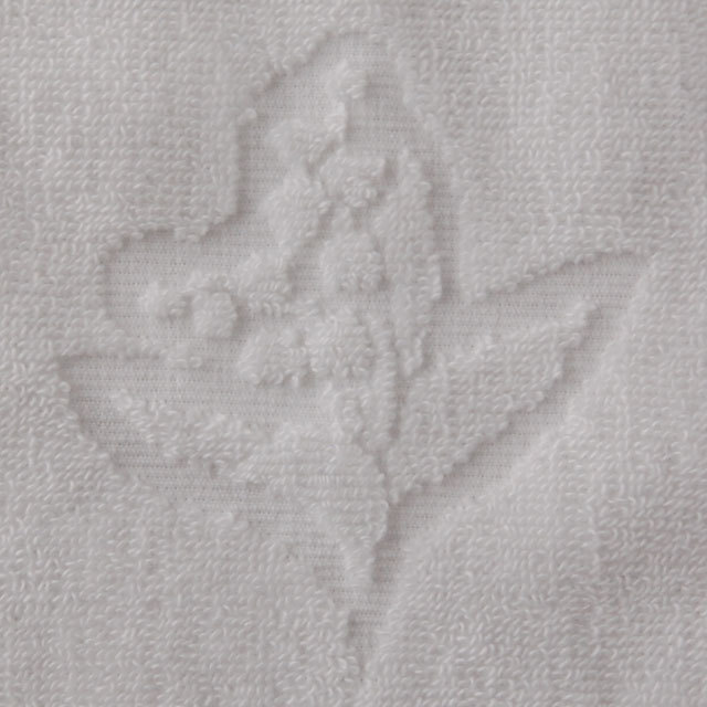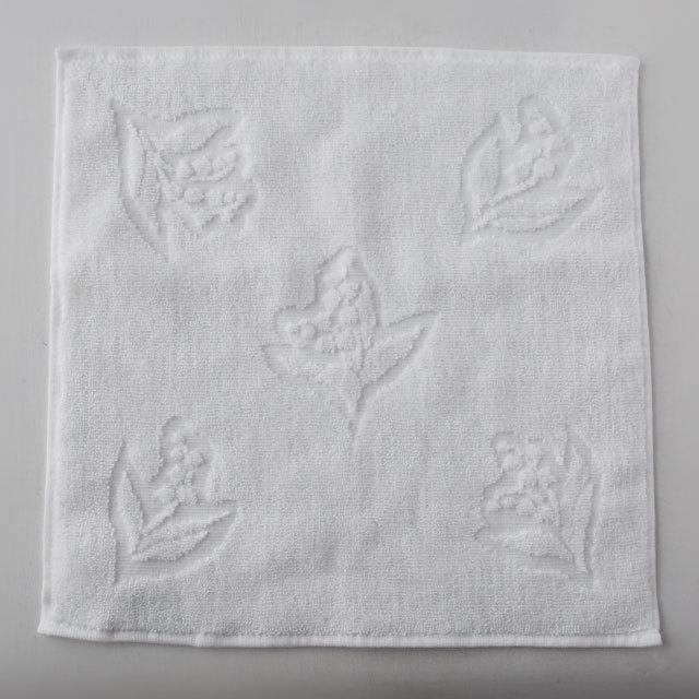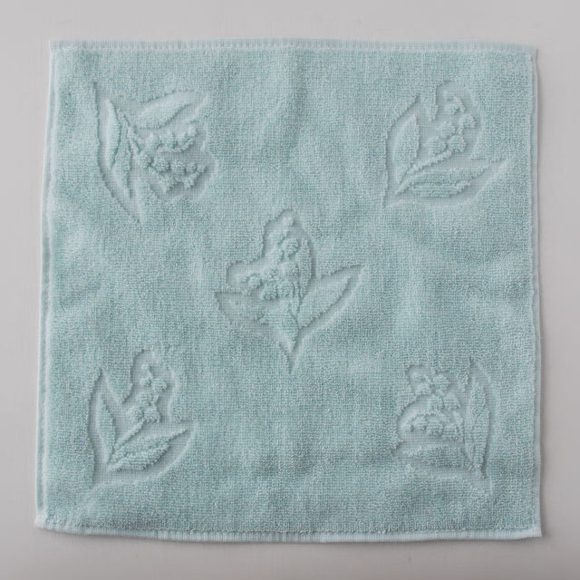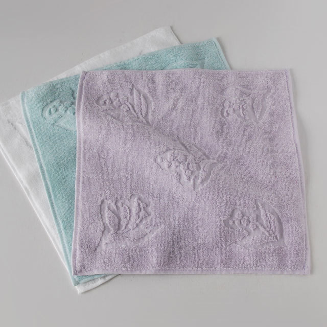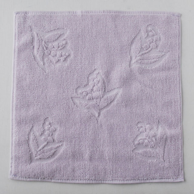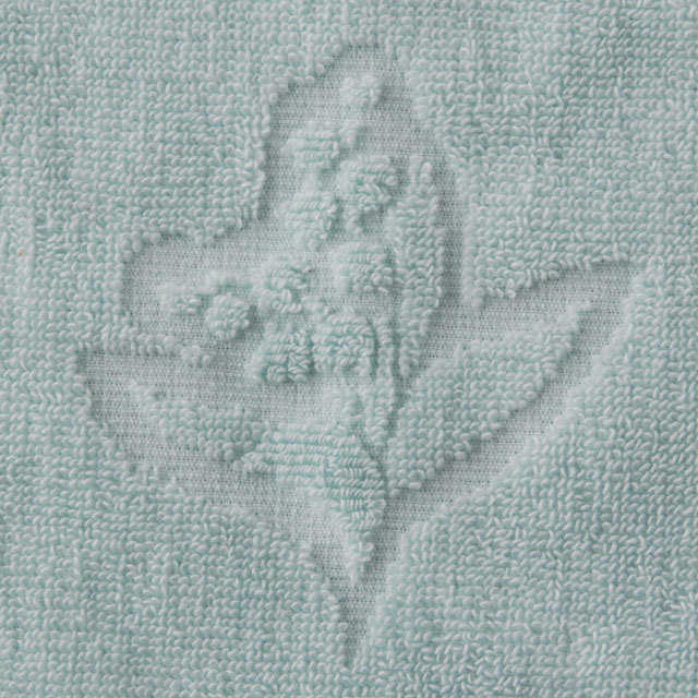 発色の美しいタオルにミュゲ(すずらん)のモチーフをジャガードで表現しました。