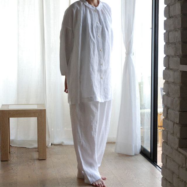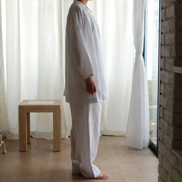 イタリアGIORI社のリネンでできたパジャマは、洗えば洗うほどに柔らかくなり、良い風合いのしわが生まれます。