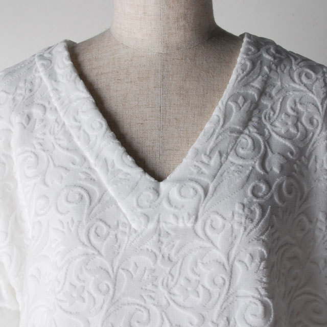 商品コード: 2100303B 返品についての詳細はこちら お問い合わせ ギフトラッピング オーダー刺繍はこちら 100% COTTON ワンピース (2100303B) カラー:ブラン ジュリエットのジャガード織りのワンピース。 ゆったりと過ごすプライベートタイムに着て頂いても、お風呂上がりにすとんと着て頂いても、 心地の良い長く愛用いただけるワンピースです。 モチーフをより優雅に表現する為にシャーリングをかけています。 サイズ(単位:cm) フリー 身巾 118 肩幅 46 袖巾 42 袖丈 35 袖口 34 後中心 108 後天巾 20 スリット 32 francjour collection こちらの商品もございます ジュリエットバスローブ/ブラン・グレージュ / FRANCJOUR ¥19,800(税込) 【SALE】シエルエトワレ 黒リネンハンカチ ( 5051301 ) ¥2,310(税込) ピマコットン タオルケット シングル / グリーロゼ (2060301GR) ¥16,500(税込) モノグラム バスタオル2枚セット ラン/グリーアルジャン ¥13,420(税込) モノグラム バスタオル2枚セット ブラン(白)/グリー ¥13,420(税込) ミモザ ピコリネンハンカチ (5051701MI) ¥2,200(税込) モノグラム フェイスタオル2枚セット / グリー/ブルーマリーヌ ¥5,280(税込) モノグラム フェイスタオル2枚セット / ブラン(白)/ブルーマリーヌ ¥5,280(税込) モノグラム バスタオル2枚・フェイスタオル2枚セット ¥18,260(税込) モノグラム ゲストタオル3枚セット / ブラン(白)/グリーアルジャン/ラン ¥5,060(税込) モノグラム バスタオル3枚セット ブラン(白)/グリーアルジャン/ラン ¥19,800(税込) シルクブランケット/キャデットグレー (2060901CG) ¥22,000(税込) ラベンダー リネンハンカチ (5051801) ¥2,200(税込) ラベンダー ピコリネンハンカチ (5051802) ¥2,200(税込) ミュゲ ピコリネンハンカチ(すずらん)(5051701MU) ¥2,200(税込) ミモザ リネンハンカチ (5051601) ¥2,200(税込) ミュゲ リネンハンカチ(すずらん)(5051501) ¥2,200(税込) モノグラム フェイスタオル2枚セット ブラン(白)/ラン ¥5,280(税込) モノグラム フェイスタオル2枚セット ブラン(白)/グリーアルジャン ¥5,280(税込) モノグラム フェイスタオル2枚セット ラン/グリーアルジャン ¥5,280(税込) モノグラム フェイスタオル3枚セット / ブラン(白)/グリーアルジャン/ラン ¥7,810(税込) ミュゲ リネンハンカチ(すずらん)(5051401) ¥2,750(税込) スメーヌ ミニタオル7枚セット ¥6,930(税込) モノグラム バスタオル3枚セット ブラン(白)/グリー/ラン ¥19,800(税込) モノグラム フェイスタオル3枚セット / ブラン(白)/グリー/ラン ¥7,810(税込) モノグラム フェイスタオル2枚セット ブラン(白)/グリー ¥5,280(税込) モノグラム ゲストタオル3枚セット / ブラン(白)/グリー/ラン ¥5,060(税込) ボンボンタオル バスタオル1枚・バスマット1枚セット/2カラー ¥11,110(税込) エッフェル塔 ミニタオル5色セット ¥5,830(税込) フランジュール FRANCJOUR コルドバスマット /ブラン/エクリュ/グレージュ (1060205B、1060205E、1060205G) ¥4,180(税込) ピマコットン タオルケット シングル / グリーラヴァンド (2060301GL) ¥16,500(税込) ピマコットン タオルケット シングル / オフホワイト (2060301OW) ¥16,500(税込) エッフェル塔フレーム リネンハンカチ (5050501B) ¥1,980(税込) ボンボン バスマット (1010705) ¥5,060(税込) モノグラムリネンハンカチ (5050201) ¥1,980(税込) フラン フェイスタオル2枚セット ブラン/ナチュラル ¥4,840(税込) 海島綿 バスタオル2枚セット ¥22,660(税込) 海島綿 バスタオル1枚・フェイスタオル1枚セット ¥14,850(税込) 海島綿 フェイスタオル2枚セット ¥7,040(税込)