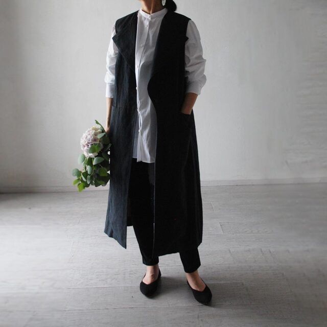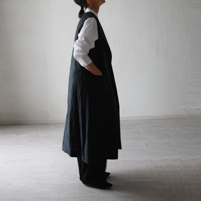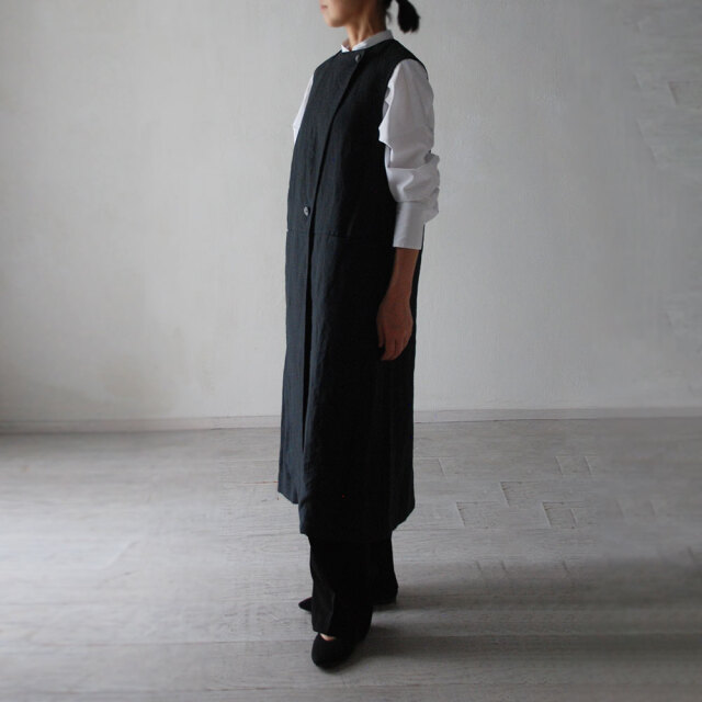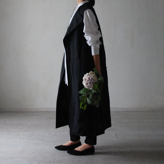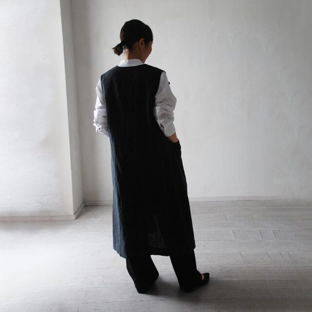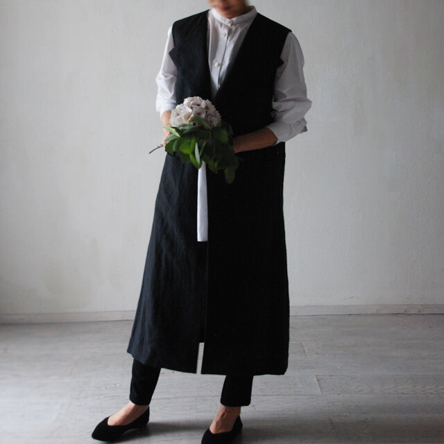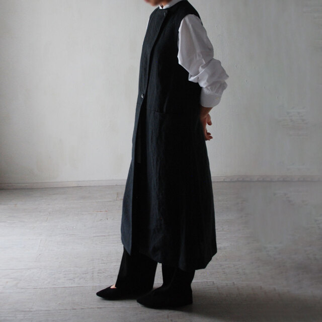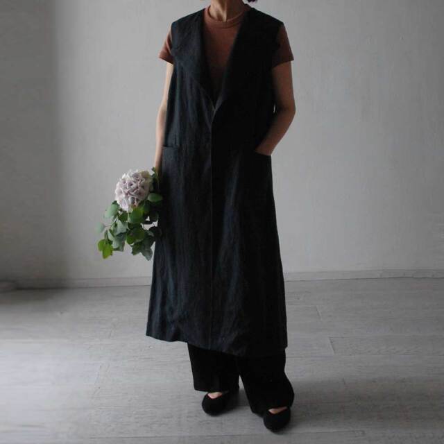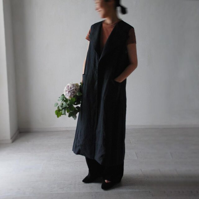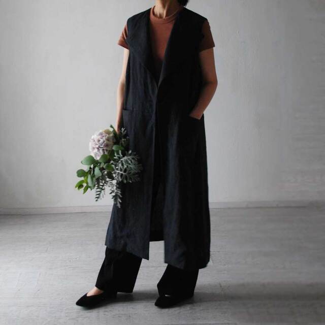 上質なリネンで丁寧に仕立てたロング丈ジレ。