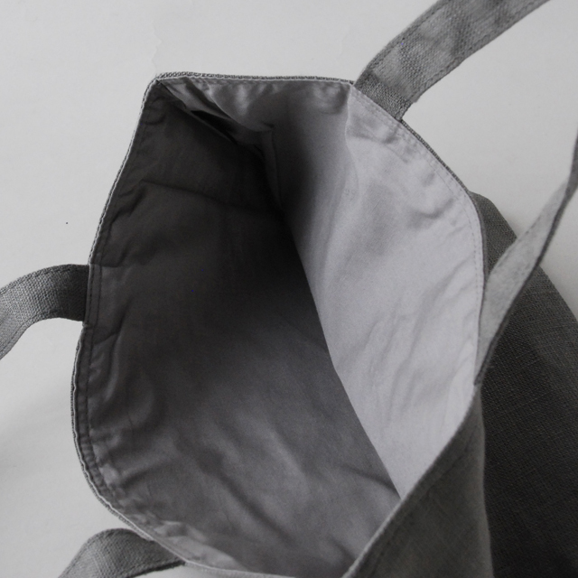 シンプルなデザインが、上質なリネン生地の風合いを引き立てます。お買い物など、ちょっとした外出に便利なワンマイルバッグとしてお出かけの必需品が収まるサイズ感が便利なアイテムです。