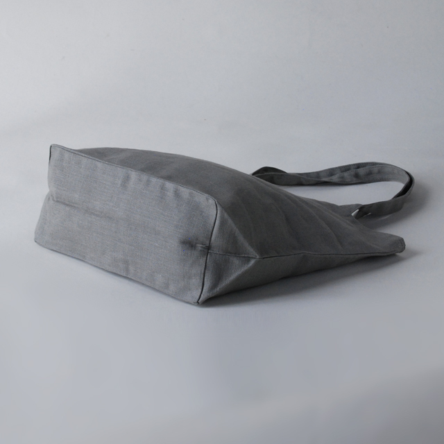 シンプルなデザインが、リネン生地の風合いを引き立てます。収納力もありながら、折りたたんで持ち運ぶことも可能なのでお出かけ時のサブバッグとしても重宝するアイテムです。