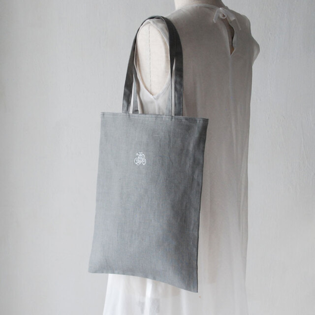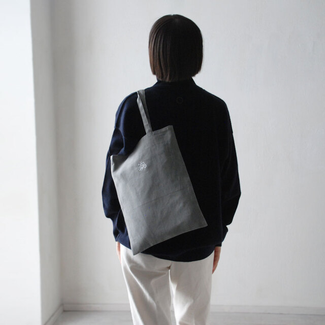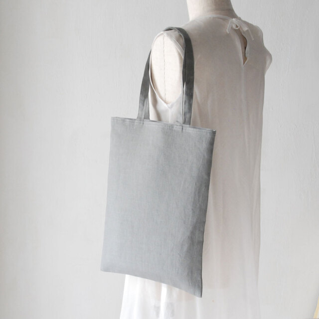 シンプルなデザインが、リネン生地の風合いを引き立てます。まち無しのフラットなのでかさばらず、A4ファイルが収納できる大きさです。サブバッグやエコバッグとしてもお使いいただける便利なアイテムです。