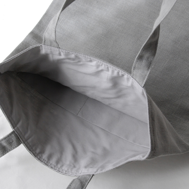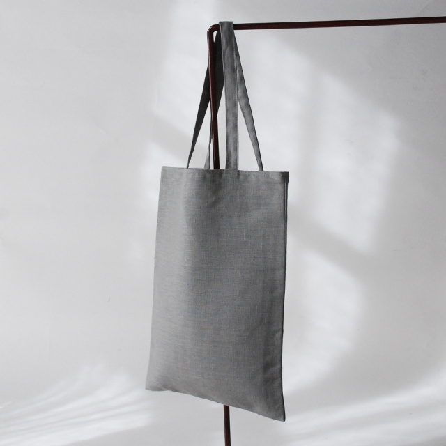 シンプルなデザインが、リネン生地の風合いを引き立てます。まち無しのフラットなのでかさばらず、A4ファイルが収納できる大きさです。サブバッグやエコバッグとしてもお使いいただける便利なアイテムです。