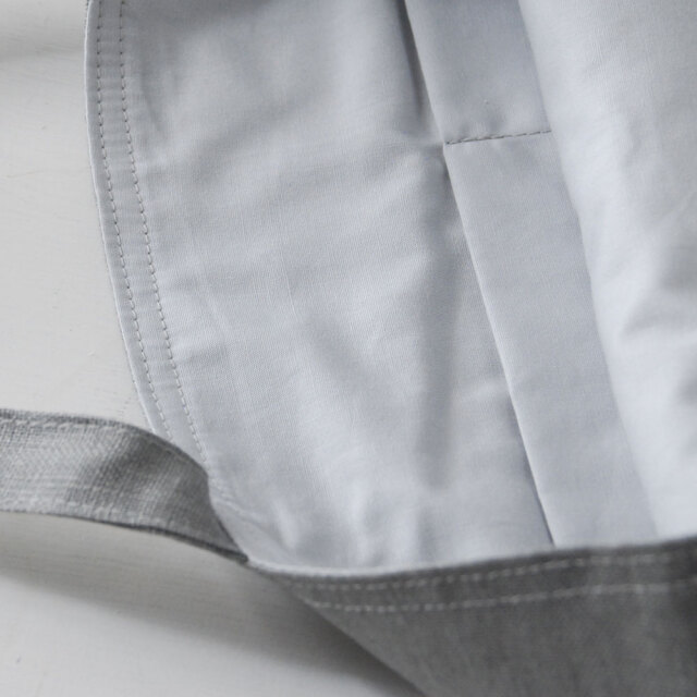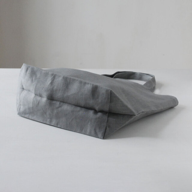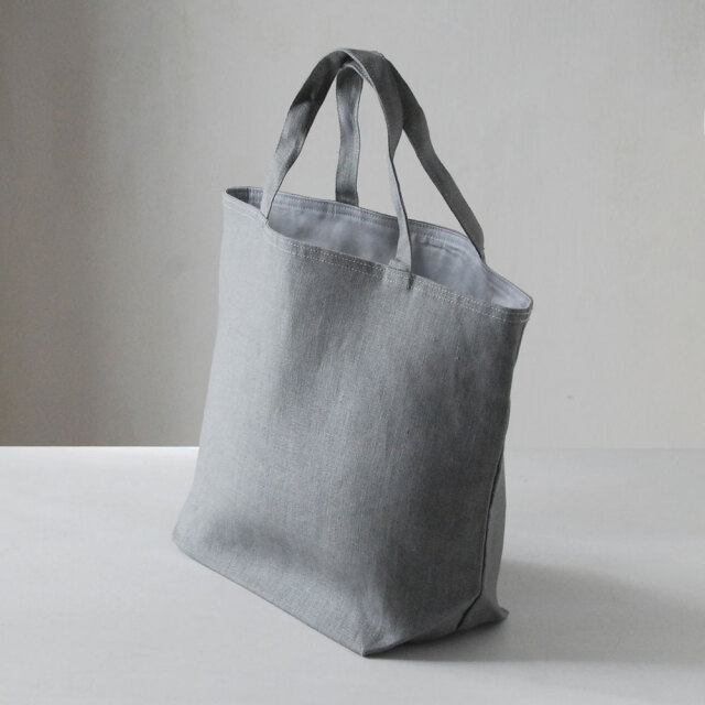 シンプルなデザインが、リネン生地の風合いを引き立てます。内ポケットもあり、かさばらない大きさながらもA4サイズのクリアファイルがジャストで入る優れ物です。