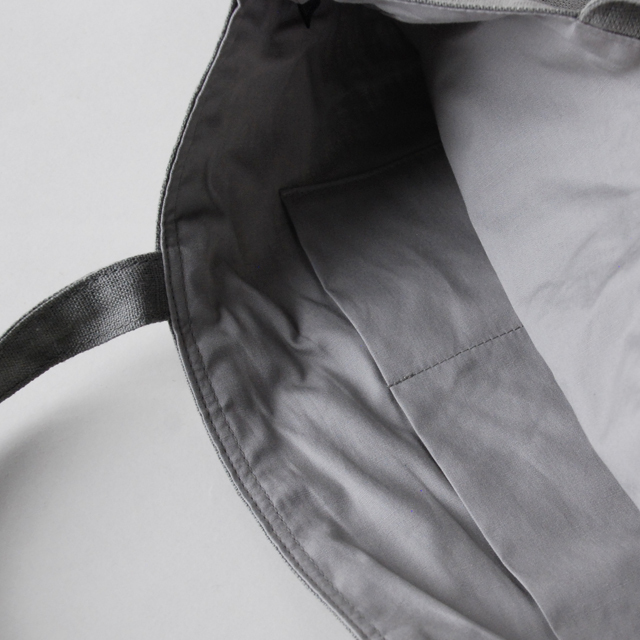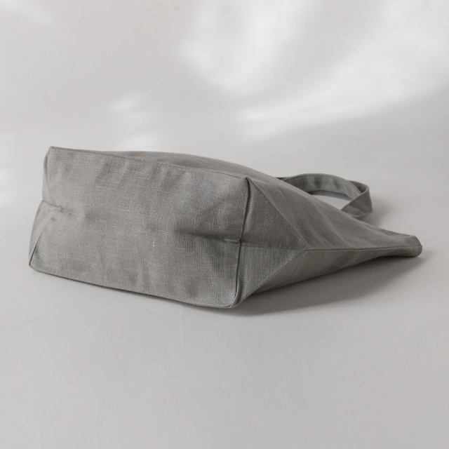 シンプルなデザインが、リネン生地の風合いを引き立てます。内ポケットもあり、かさばらない大きさながらもA4サイズのクリアファイルがジャストで入る優れ物です。