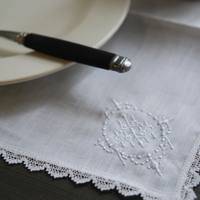 シャンデリアフレーム リネンハンカチ(35×35cmレース含む)