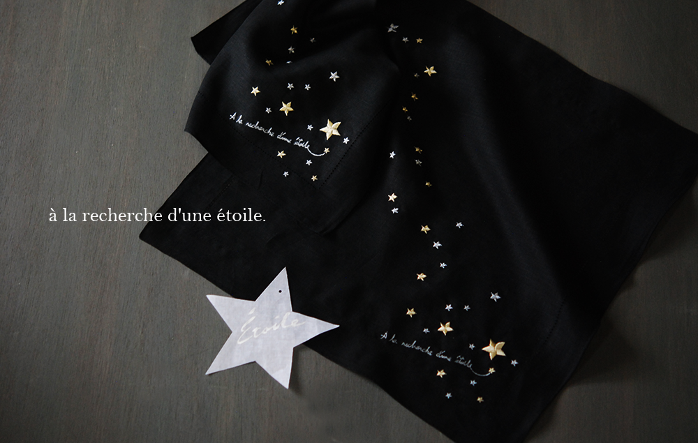 シエルエトワレ 黒リネンハンカチ(45.5×46cm)