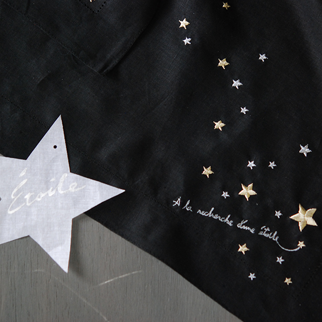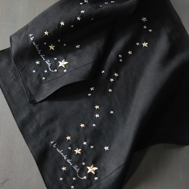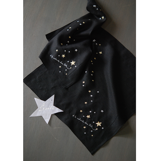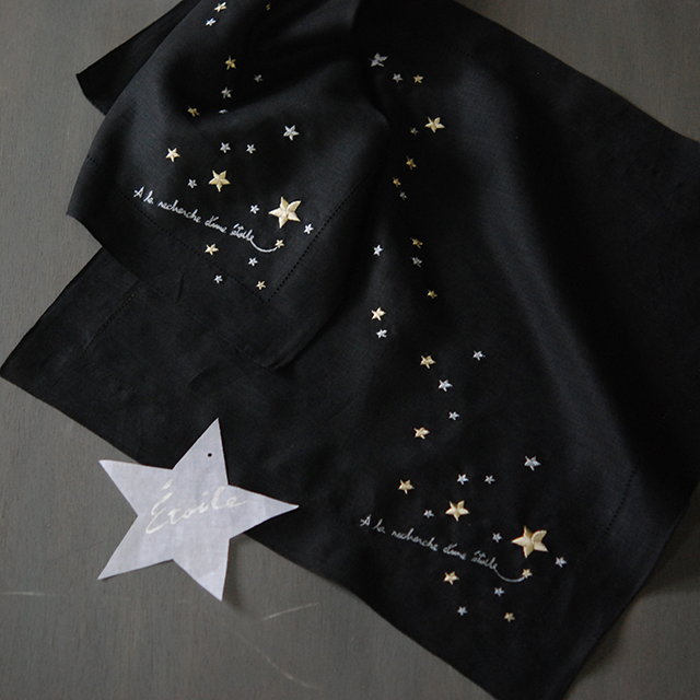 シエルエトワレ 黒リネンハンカチ(45.5×46cm)