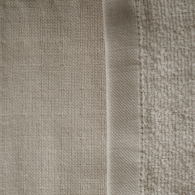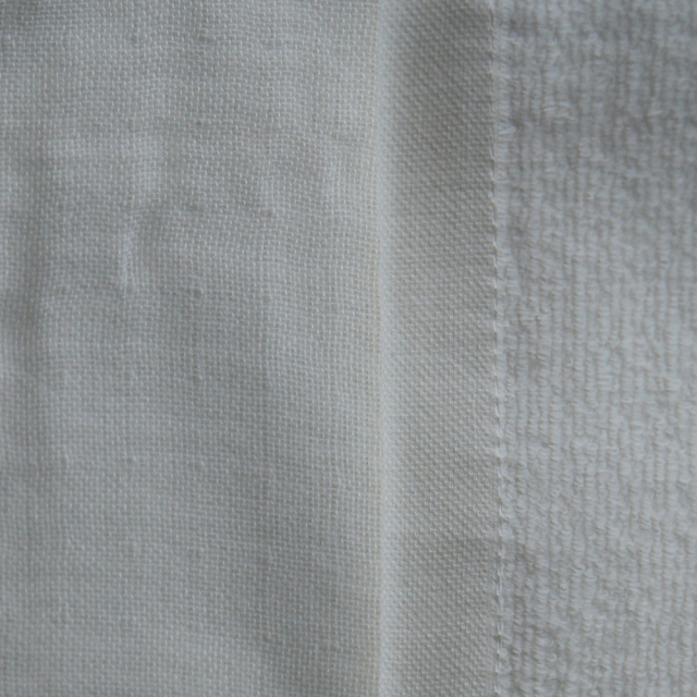 表が無撚糸パイル、裏がガーゼ織りになっており、ソフトで吸水力に優れたタオルです。