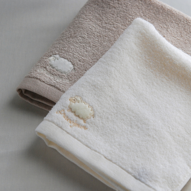 ひつじのアップリケ刺繍が施されたミニョンシリーズ。 色使いが優しく、可愛い赤ちゃんにぴったりのシリーズです。