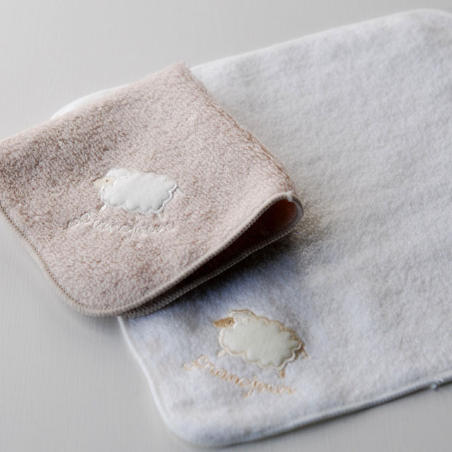 ひつじのアップリケ刺繍が施されたミニョンシリーズ。 色使いが優しく、可愛い赤ちゃんにぴったりのシリーズです。