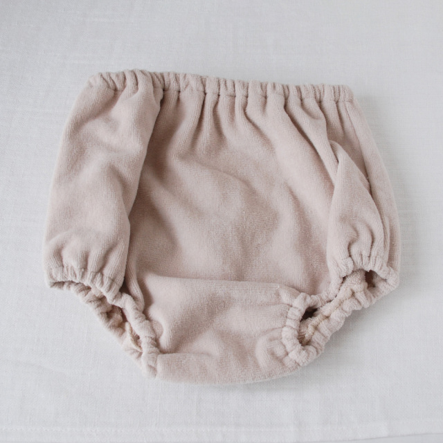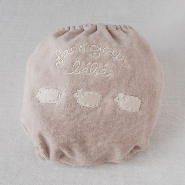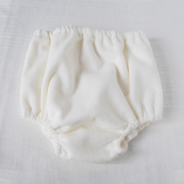 かわいいアップリケ刺繍が入っています。 ブルマーはおむつの上からだけでなく、おむつがとれてからもパンツの上にはいていただくこともできますので、2~3歳頃まで長くお使いいただけます。