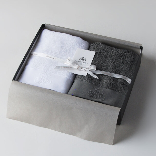 フランジュールが提案するタオルのギフトセット。ギフトボックスなどラッピング代込みのお値段です。 (8010201Z1)