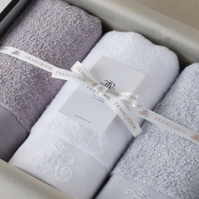 フランジュールが提案するタオルのギフトセット。ギフトボックスなどラッピング代込みのお値段です。 (8010206Z2)
