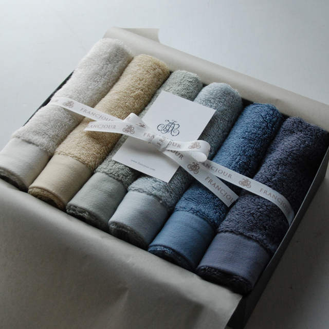 | セット内容 | ゲストタオル6枚 (サーブル/ムタルド/ヴェール/グリーアシェ/ブルーモネ/ブルーニュイ を1枚ずつ) |
