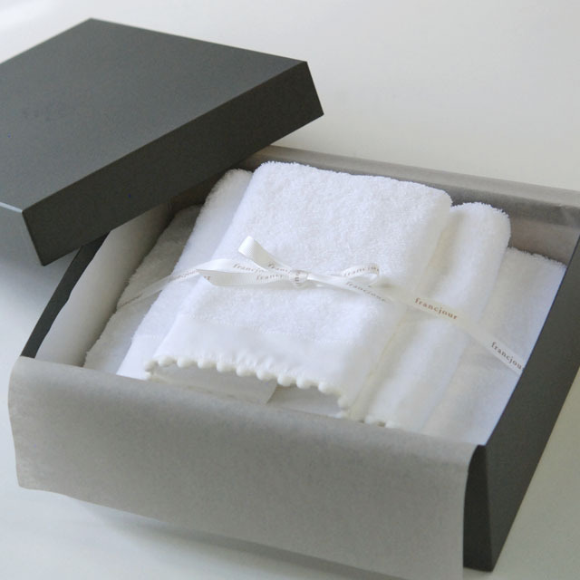 フランジュールが提案するタオルのギフトセット。ギフトボックスなどラッピング代込みのお値段です。 (8010904-1)