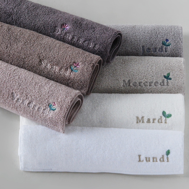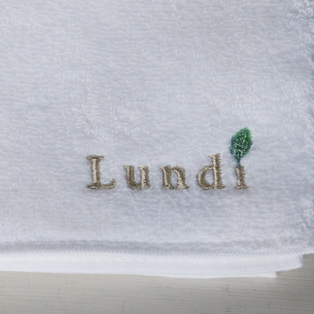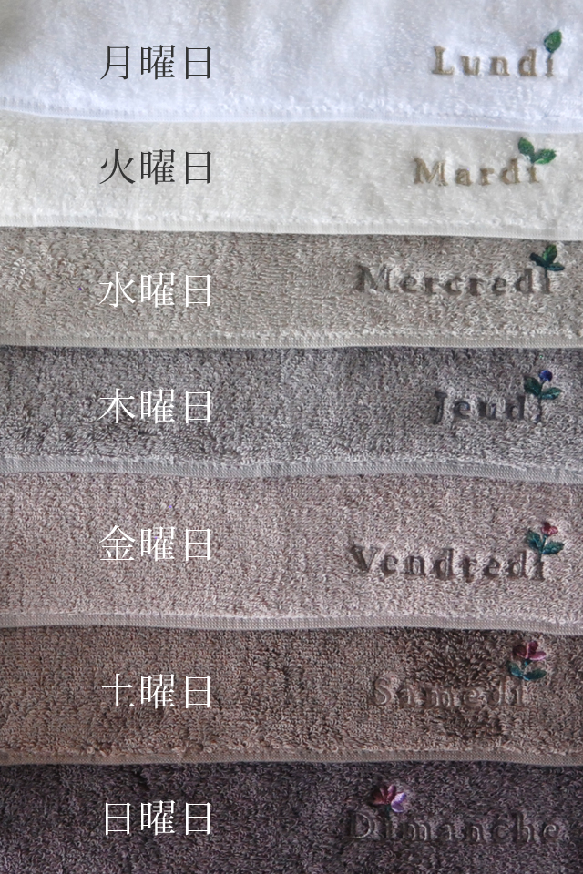 ■ デコール ミニタオルに月曜日から日曜日までの刺繍をお入れしました。(80511040)