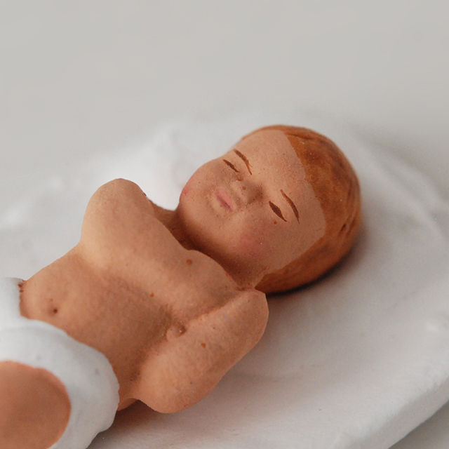 アルテラで作られるサントン人形は、従来のクリスマスのクラシックなスタイルを超えて、よりアートな表現になっています。動きのあるスタイル、白やベージュといったセンスの良い色使い、またドレスの模様や目の輝きなど、細部に渡る彩色は素晴らしく、シーズンを通してお部屋のインテリアになります。