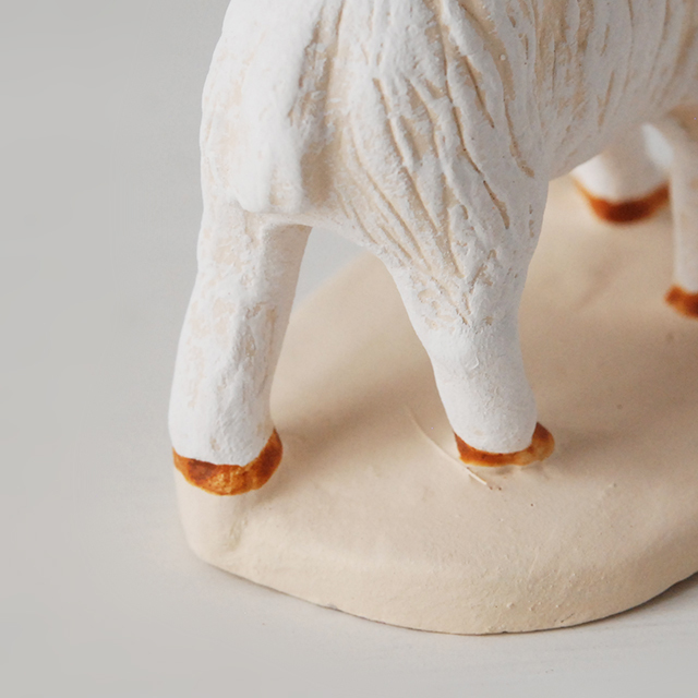 アルテラで作られるサントン人形は、従来のクリスマスのクラシックなスタイルを超えて、よりアートな表現になっています。動きのあるスタイル、白やベージュといったセンスの良い色使い、またドレスの模様や目の輝きなど、細部に渡る彩色は素晴らしく、シーズンを通してお部屋のインテリアになります。