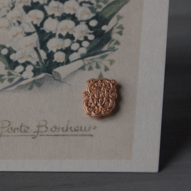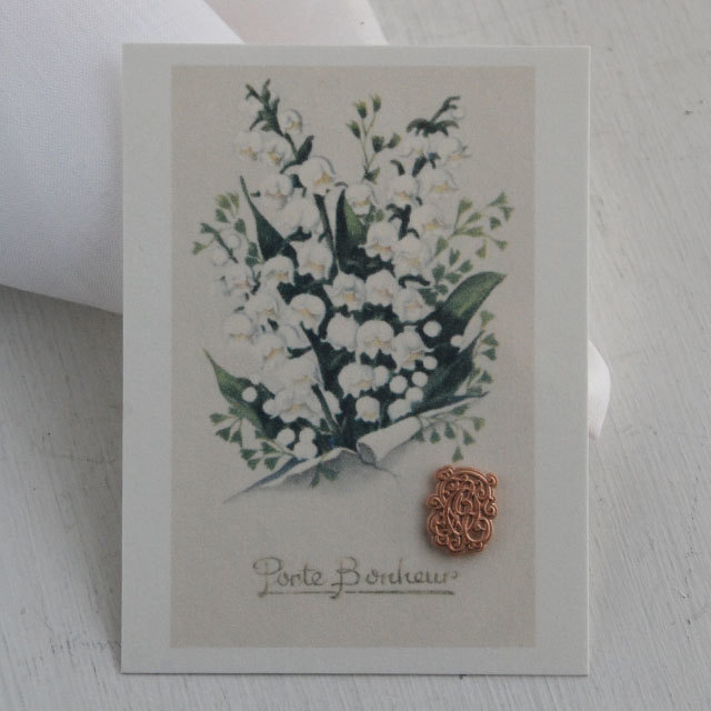 ピンブローチをアンティークのすずらんカードを印刷した台紙にセットしました。