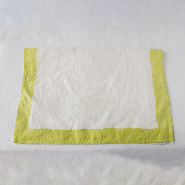 今回はフランジュールオリジナルとして型押ししたリネンプリントのテーブルウェアを作っていただきました。