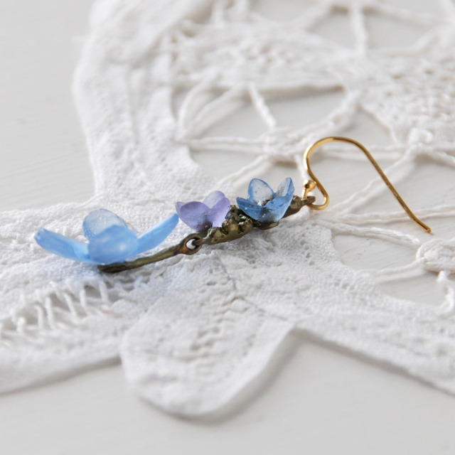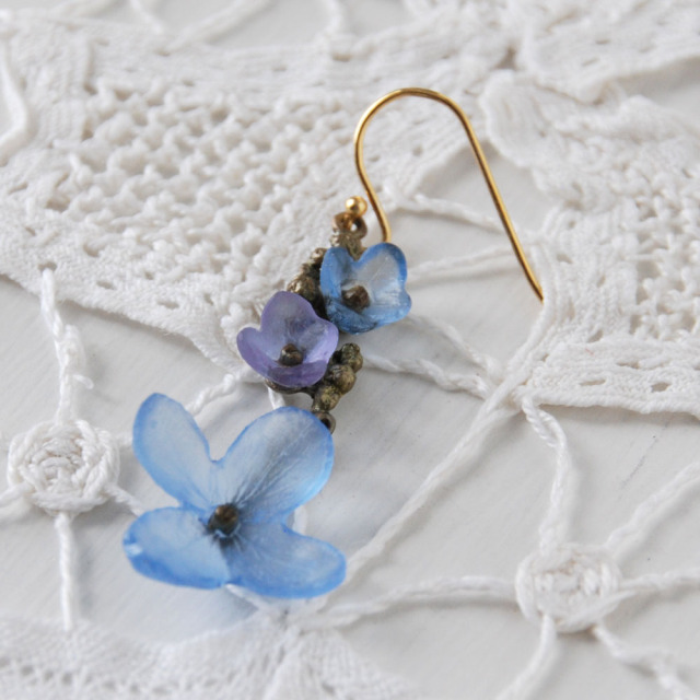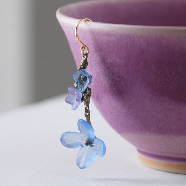 素材:緑青青銅、ガラス ワイヤー:シルバー925(24Kゴールドメッキ加工)