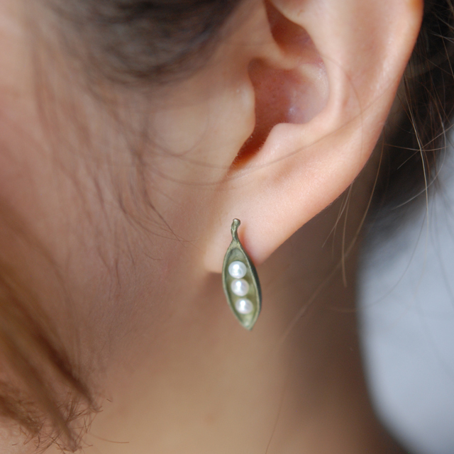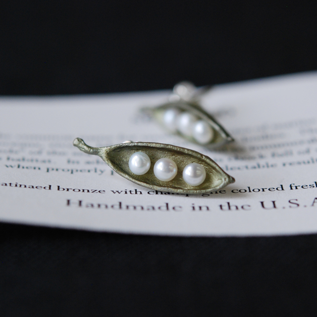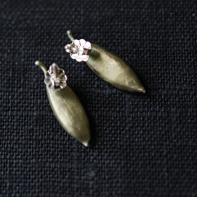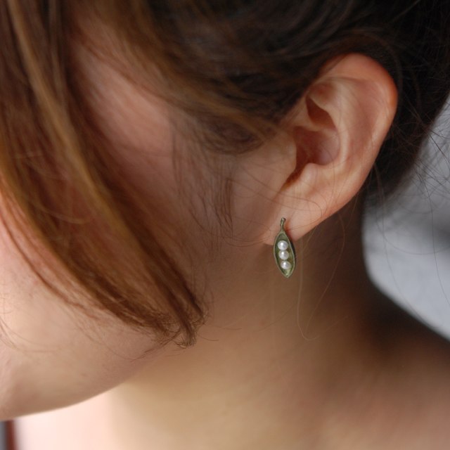 素材:パール・緑青青銅、 キャッチ部分:スターリングシルバー925