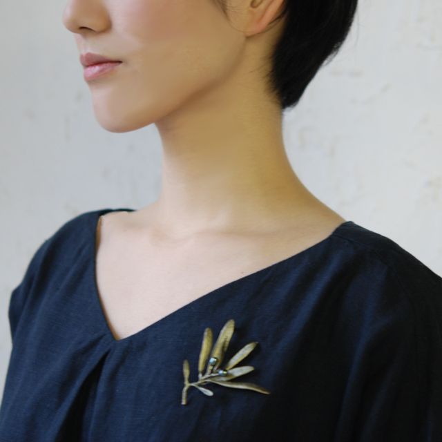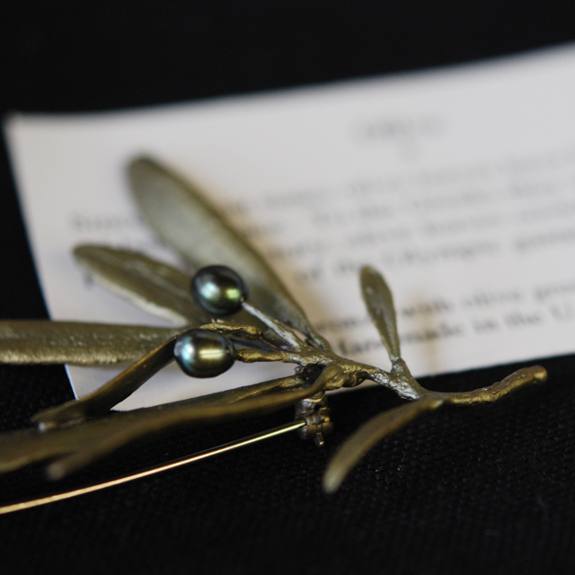 マイケルミショー Michael Michaud オリーブ ブローチ(パール付) (CA-5604BZOP)