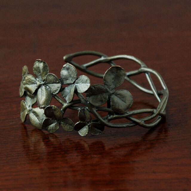 自然を愛する心で満ちあふれているジュエリーデザイナー。その作品は見ているだけでも心が和らぎます。鋳型職人としてスタートし、後に工業デザインを学ぶ中で、自然美を金属で表現する喜びと出会います。