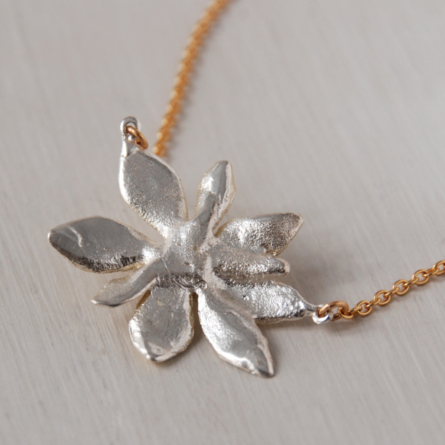 自然を愛する心で満ちあふれているジュエリーデザイナー。その作品は見ているだけでも心が和らぎます。鋳型職人としてスタートし、後に工業デザインを学ぶ中で、自然美を金属で表現する喜びと出会います。