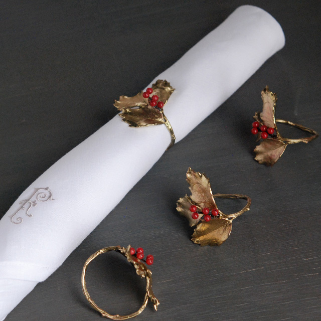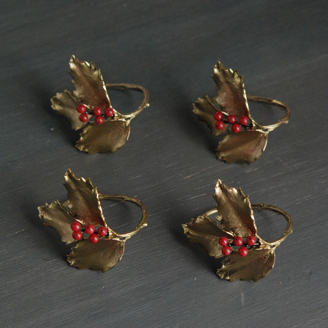 マイケルミショー Michael Michaud ナプキンリング ヒイラギ 4点セット (ブロンズ) ( CA-NR9447AB-RJ )