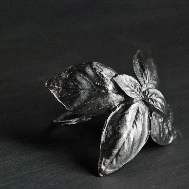 自然を愛する心で満ちあふれているジュエリーデザイナー。その作品は見ているだけでも心が和らぎます。鋳型職人としてスタートし、後に工業デザインを学ぶ中で、自然美を金属で表現する喜びと出会います。