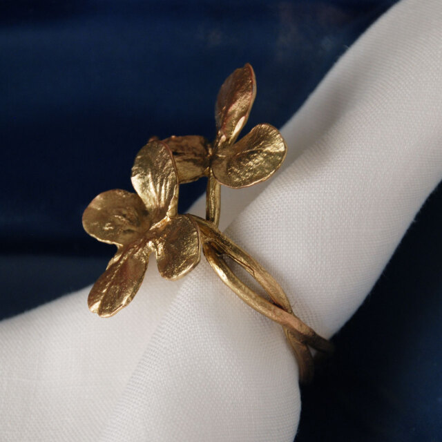 自然を愛する心で満ちあふれているジュエリーデザイナー。その作品は見ているだけでも心が和らぎます。鋳型職人としてスタートし、後に工業デザインを学ぶ中で、自然美を金属で表現する喜びと出会います。