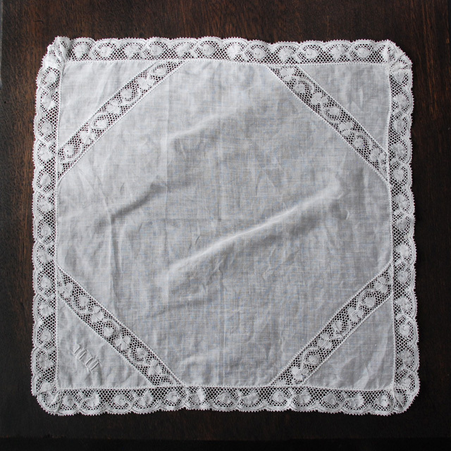 フランス生まれのカットワーク刺繍 'リシュリュー'が施されたハンカチやテーブルクロス、ドイリーなど・・・