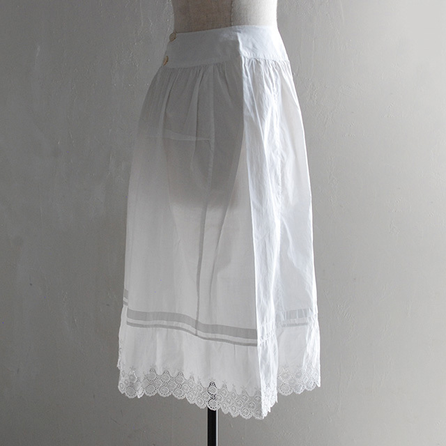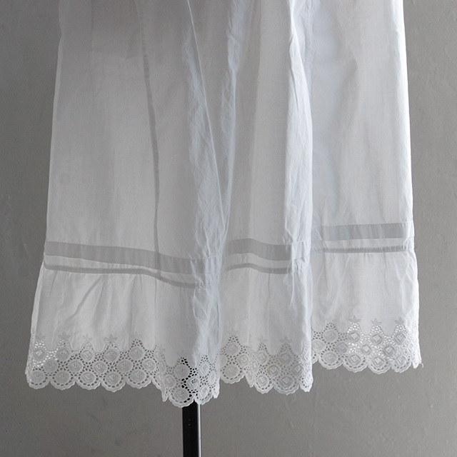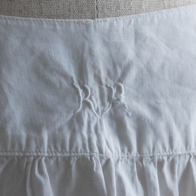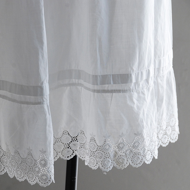 イギリス刺繍のコットンのペチコート。フロントにモノグラム刺繍が入っています。