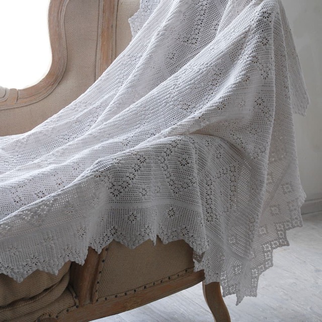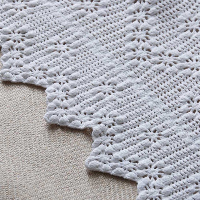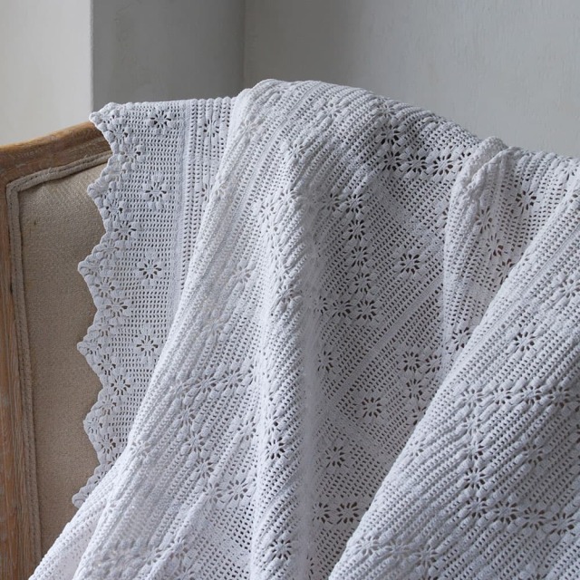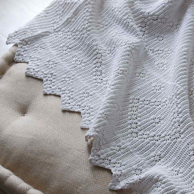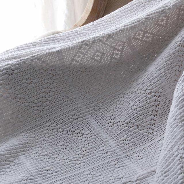 かぎ針編みのダイヤ柄パターンが施されたコットンのベッドスロー。