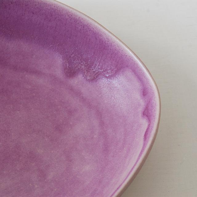 その特徴は、高温の釜で焼かれた強いテクスチュアと、豊かな色彩を覆う釉薬の艶。