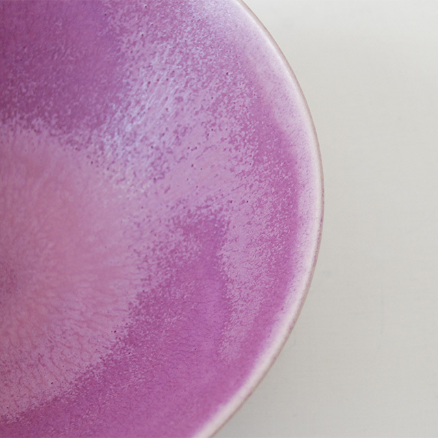 その特徴は、高温の釜で焼かれた強いテクスチュアと、豊かな色彩を覆う釉薬の艶。