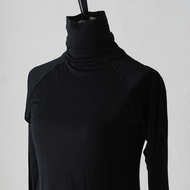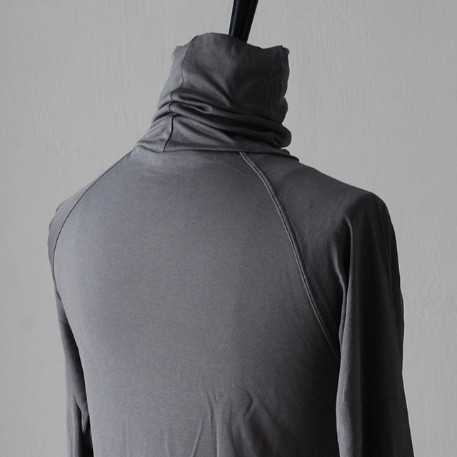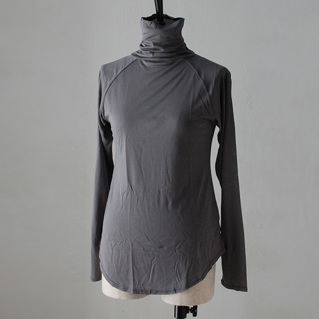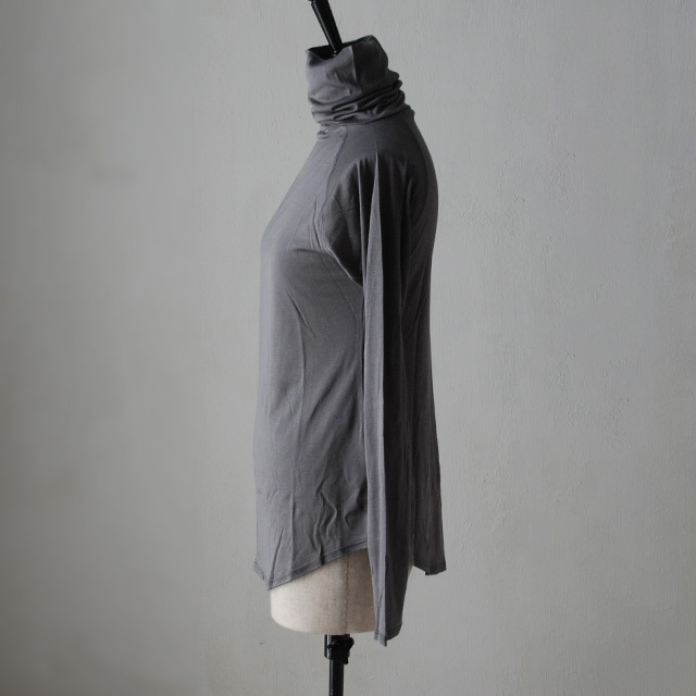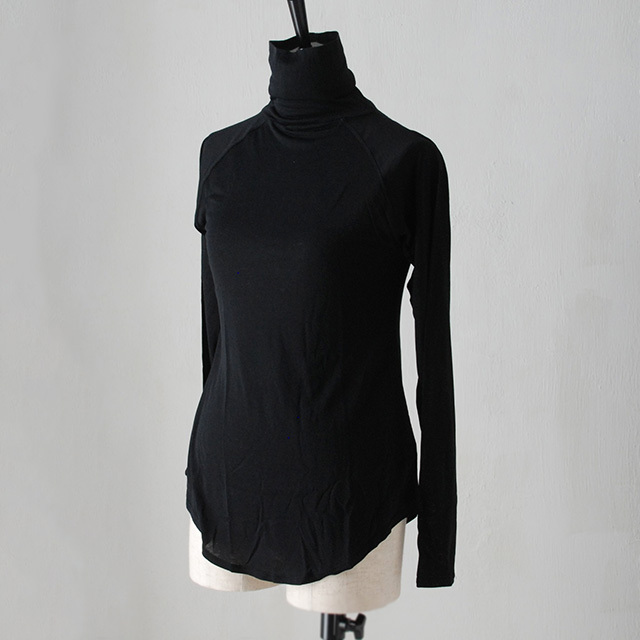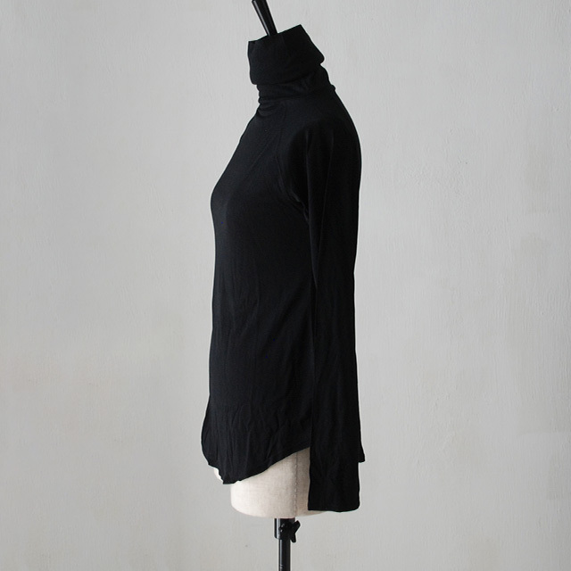 ネック周りがチクチクするタートルネックの下に着用するとその快適さを実感できます。天竺編みのしっかりとした生地ですので、シャツやワンピース、カーディガンの下にカットソー感覚で着用頂けます。首までしっかりと覆えるため暖かさも断トツの一枚です。冬のワードローブに一枚あると大変重宝します。