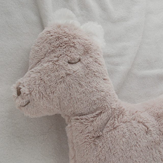 ユーモラスな姿形が目を引くベビーアルパカのぬいぐるみです。名前はルル。