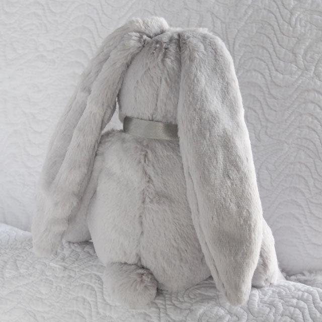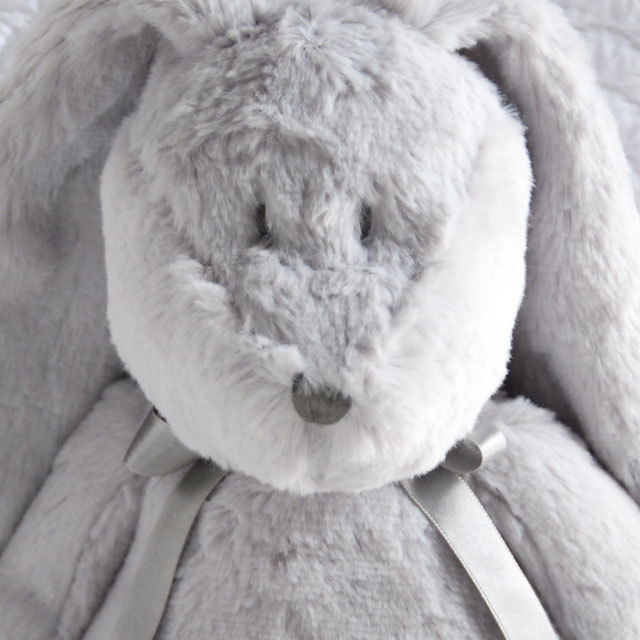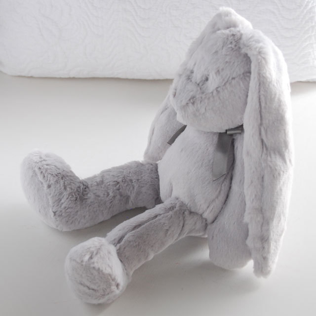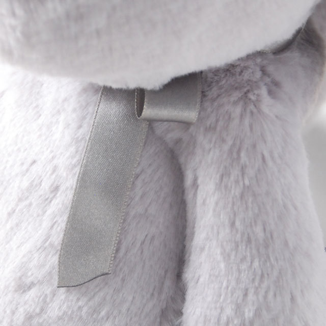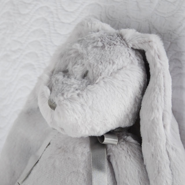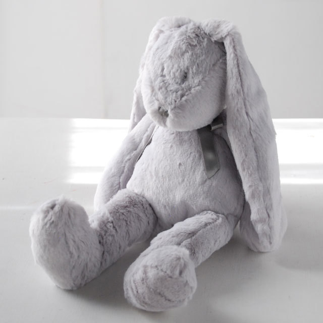 愛くるしい表情のふわふわで気持ちがいいうさぎのぬいぐるみ。名前はニーラ。