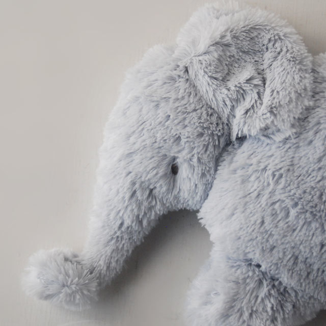かわいいゾウのぬいぐるみです。名前はオスカール。