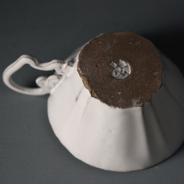 パリで採れる土。白い釉薬をかけその下に透ける様はこの土ならではの美しさです。